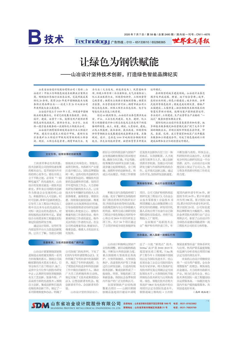 讓綠色為鋼鐵賦能——山冶設計堅持技術創新,打造綠色智能品牌紀實